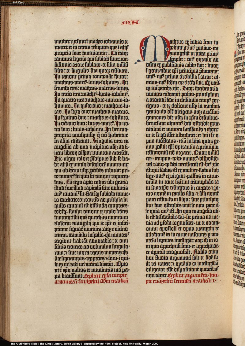 JPG file Genesis 1 from an original Gutenberg bible 1452 in Latin, from England.